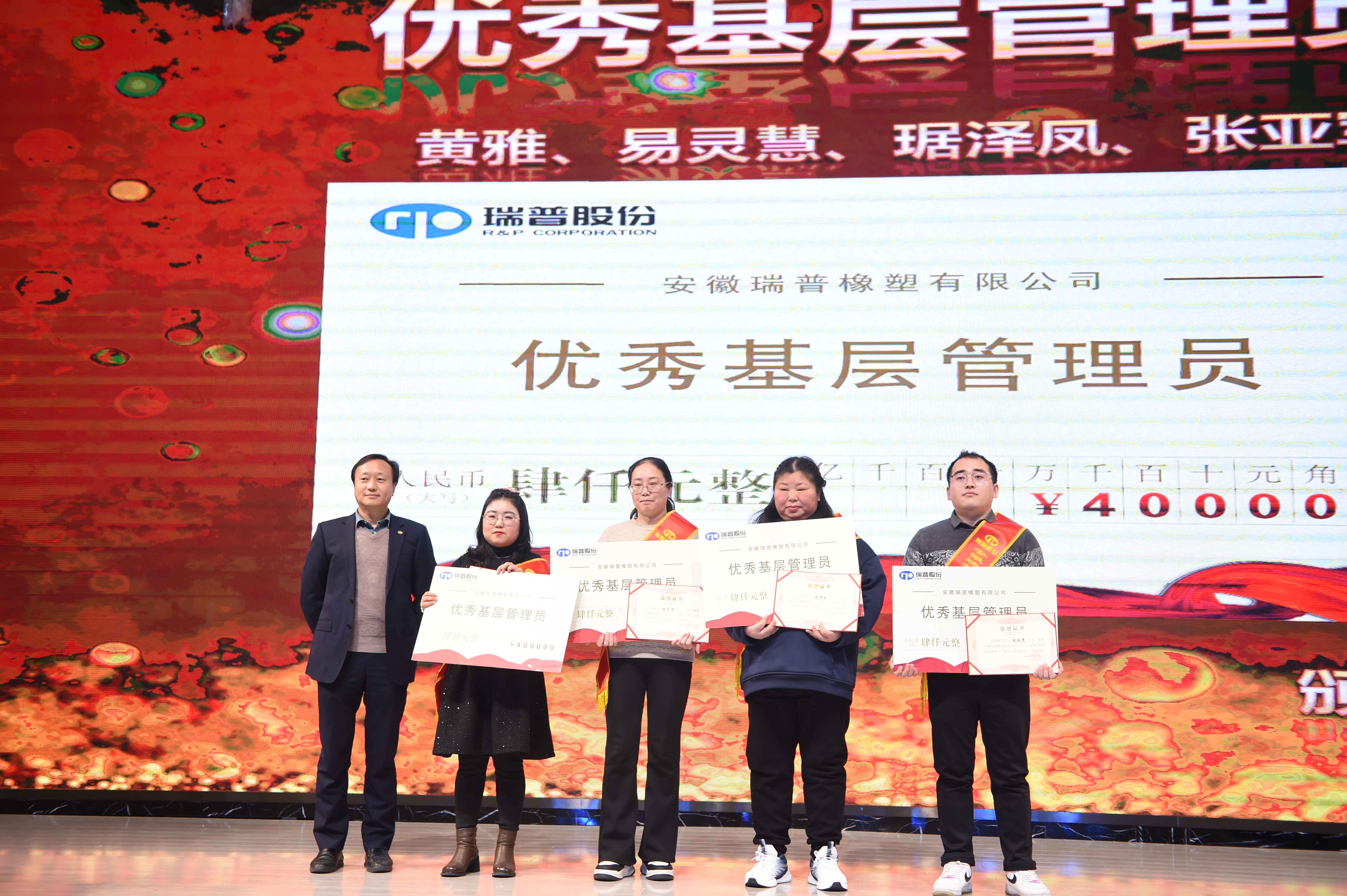 龍騰虎躍慶盛事,馬到功成事業興,安徽瑞普橡塑有限公司年會由國際貿易部經理和人力資源部經理擔任主持人,瑞普2024年會在倆位主持人簡單而又大氣的開場白下正式拉開序幕。